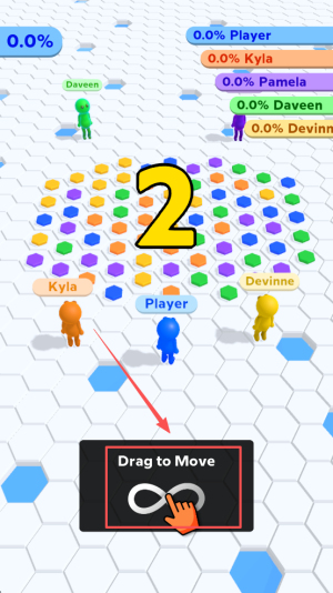 1、开启领土挑战:进入游戏选择关卡,明确 “扩大同色领土、击败对手” 目标,熟悉收集方块与撞击操作的基础逻辑。