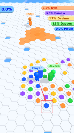 2、收集同色方块:在场景中寻找并收集与自身领土同色的方块,每收集一个,领土范围同步扩大,增强对抗实力。