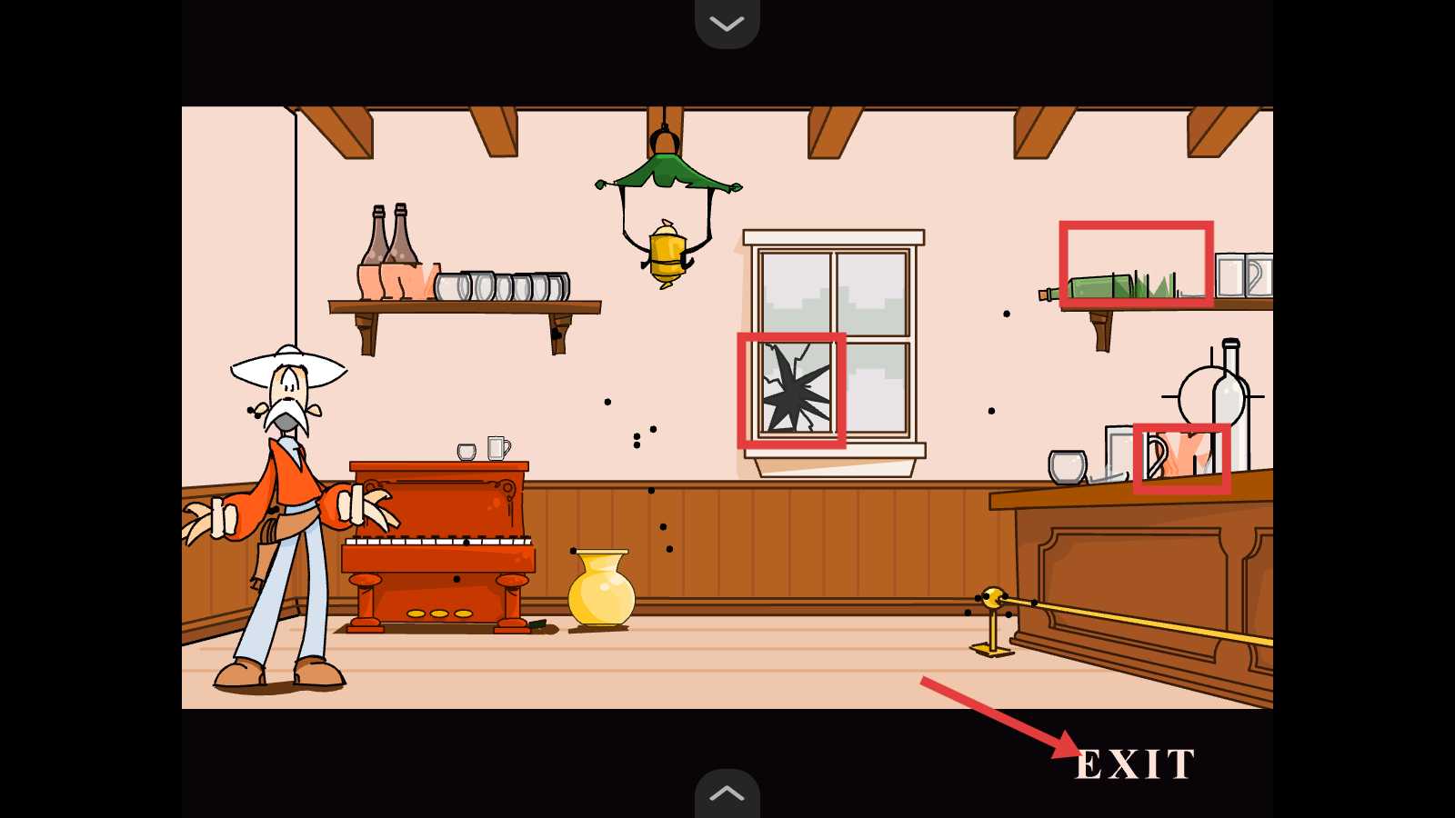 3、射击后观察窗户、酒瓶等破坏效果,完成当前射击环节后,点击【EXIT】退出,结束该轮挑战。