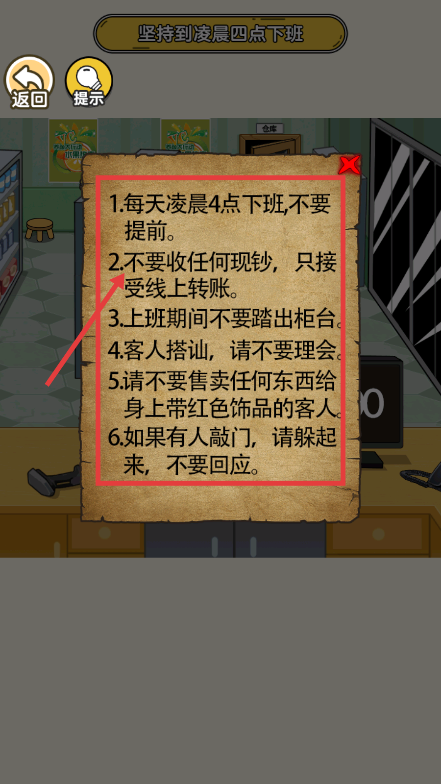 2、牢记游戏规则,只要不触发撑到早上4点就可以通关了。