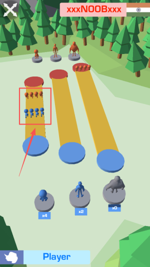 2、接着,通过点击屏幕上的箭头按钮来控制你的角色移动,以收集更多的小人并扩大你的队伍。
