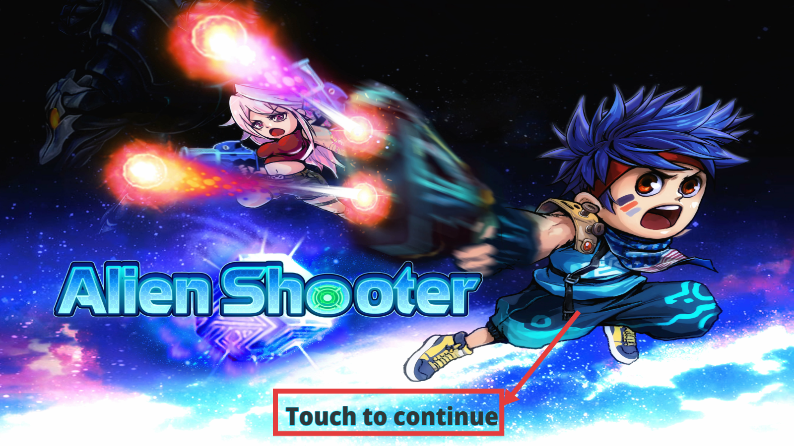1、进入【Alien-Shooter】游戏,点击【Touch-to-continue】,开启外星射击冒险之旅。
