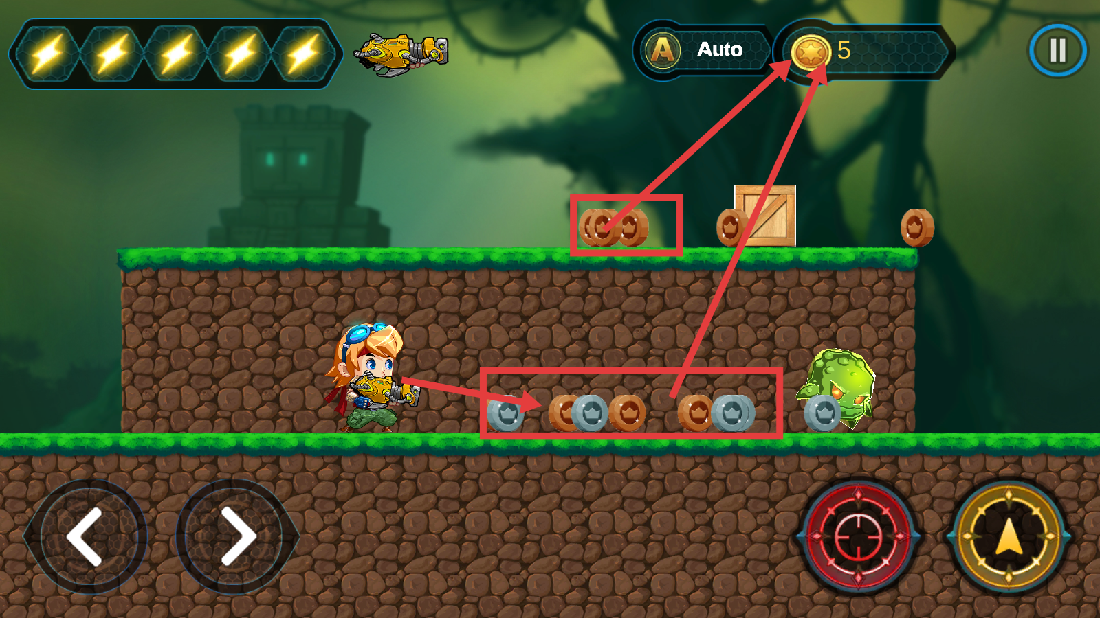 3、在关卡中注意收集金币,无论是地面还是高处的金币都要尽量获取,积累资源用于后续升级或购买道具。
