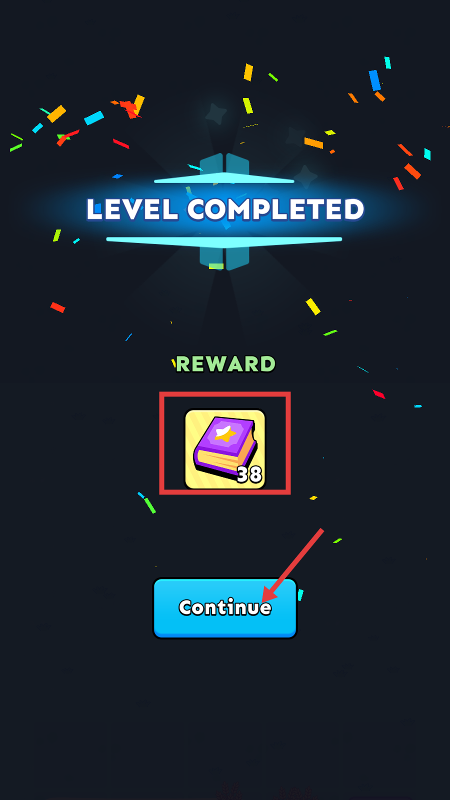 4、完成【Level-1】后,领取38本奖励书籍,点击【Continue】继续挑战下一关,积累资源持续成长。