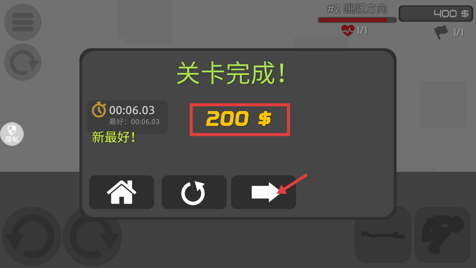 4、关卡完成后,获得【200$-奖励】,点击箭头按钮,继续挑战后续关卡,积累更多资源。