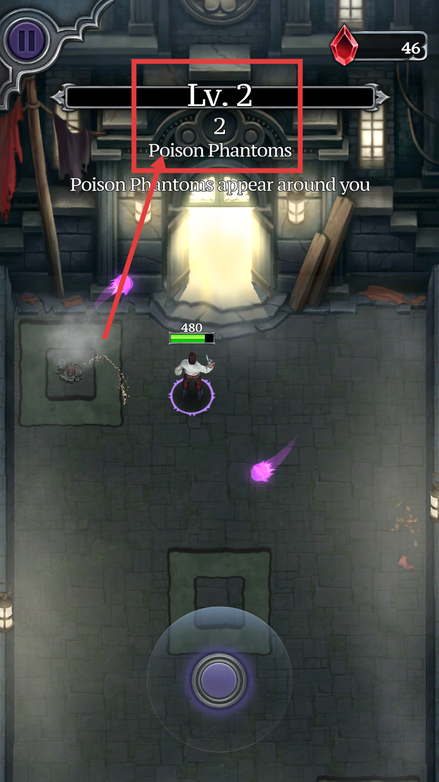 4、升级到【Lv.2】后,应对围绕的【Poison-Phantoms】,利用技能和走位规避伤害,持续推进关卡。