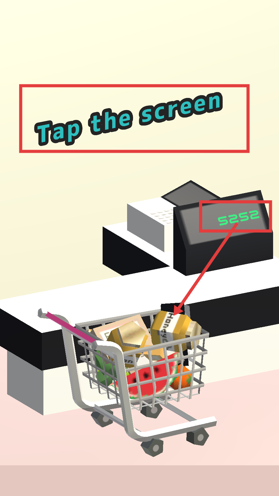 3、到达收银台后,点击屏幕触发结算,关注收银机显示的金额【5252】,完成结账操作以获取分数。