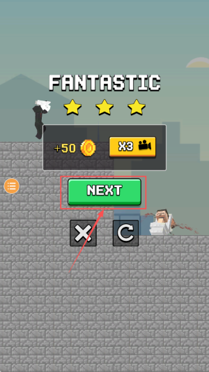 3、如何完成关卡:消灭所有敌人后,点击“NEXT”按钮进入下一关。