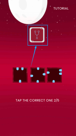 2、接着,在教程关卡“TAP THE CORRECT ONE 2/5”中,根据提示点击正确选项,完成教学。