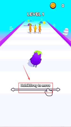 1、首先,进入LEVEL 1后,按提示“Hold & Drag to move”,按住并拖动角色开始移动。