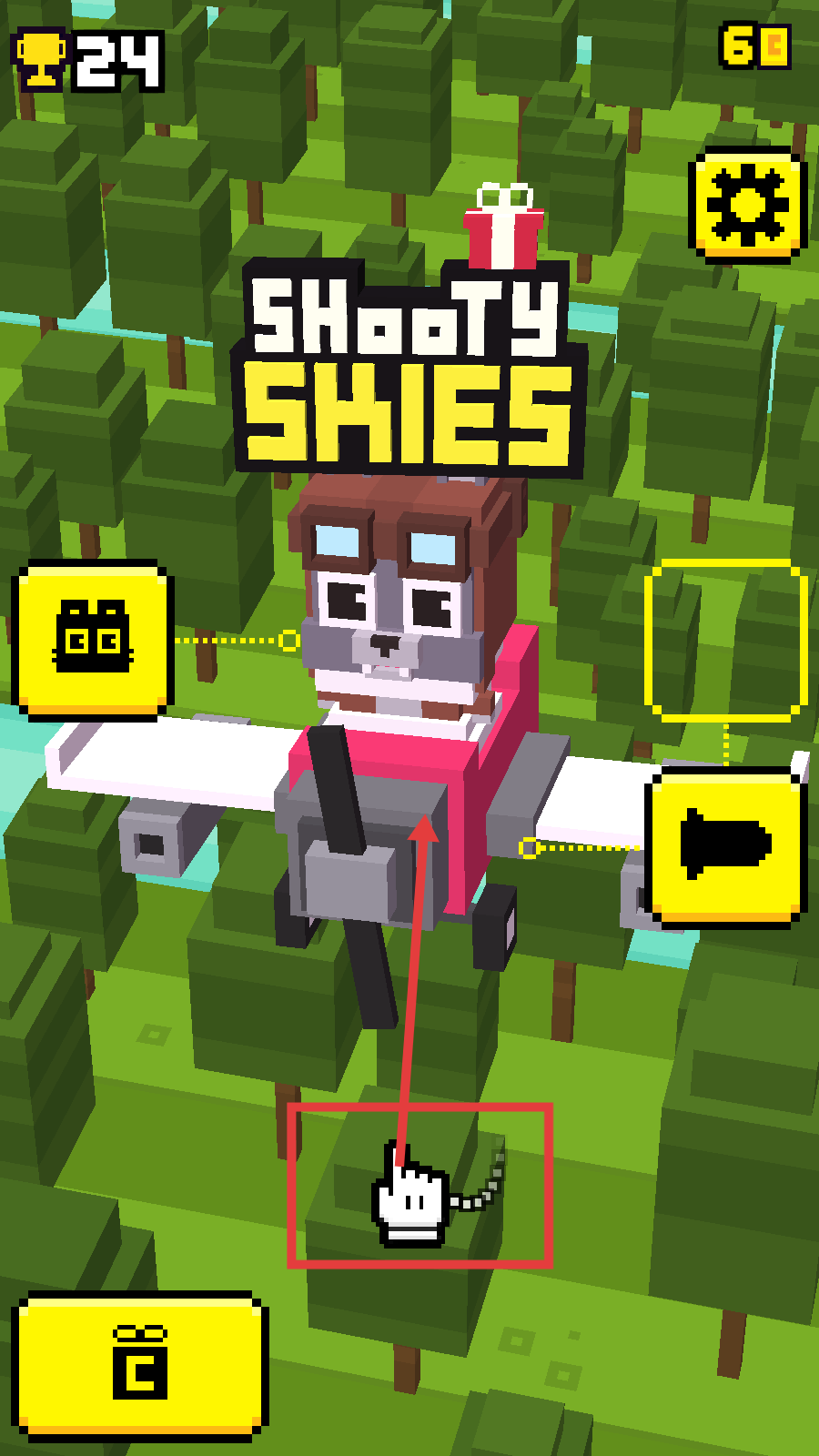 1、进入【Shooty-Skies】游戏,点击飞机区域开始冒险,开启像素风格射击之旅。