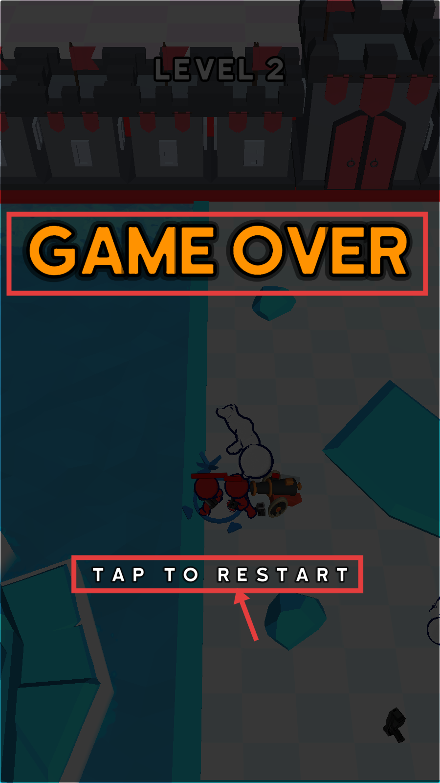 4、若出现【GAME-OVER】,点击【TAP-TO-RESTART】重启,总结技巧再战【LEVEL-2】。