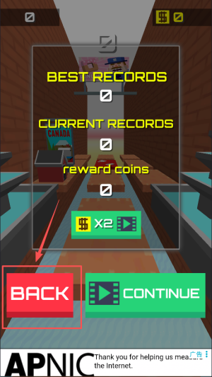 4、最后,如果游戏失败,点击“BACK”按钮返回主菜单,或点击“CONTINUE”按钮继续游戏。