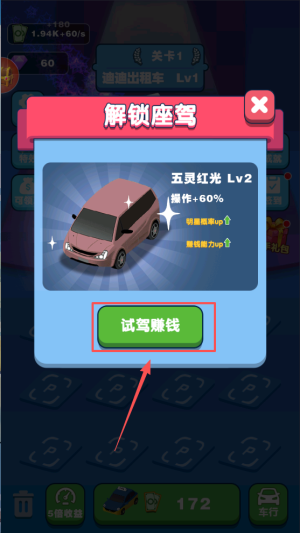 4、切换模式体验:完成单一模式挑战后,切换其他模式(如从试驾转出租车),感受不同玩法乐趣,持续闯关积累资源,向 “暴富” 目标推进。