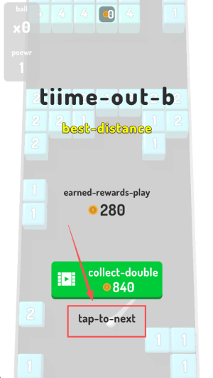 4、最后,如果游戏失败,点击“tap-to-next”按钮尝试下一关。