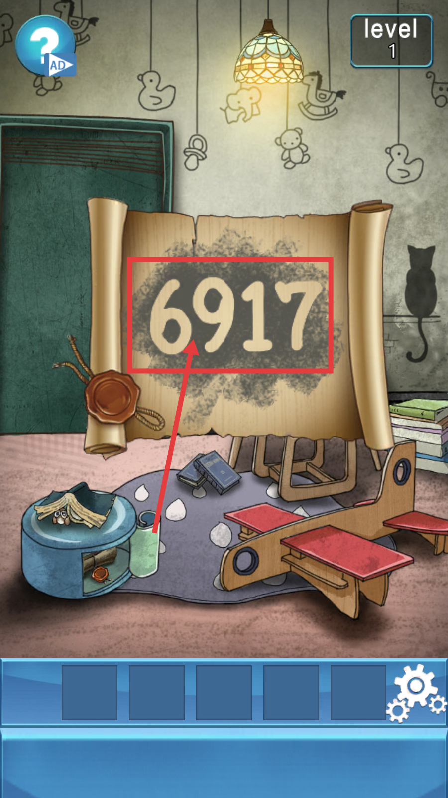 4、记住卷轴上的【6917】密码,将其输入门锁,即可打开大门,完成level1的逃脱挑战。