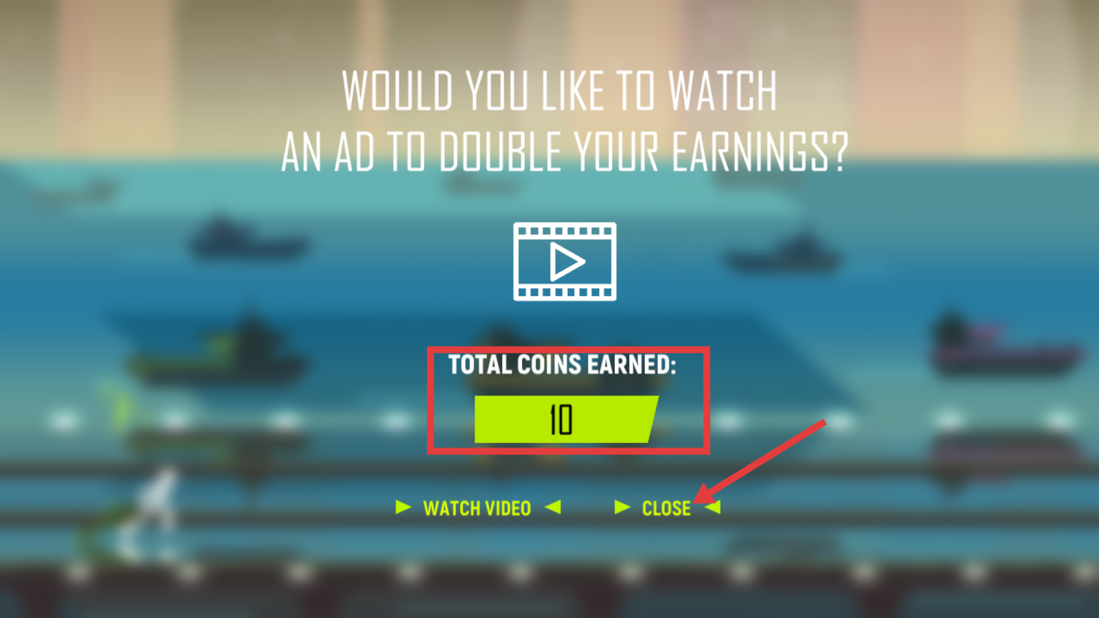4、关卡结束后获得【10】金币,可选择观看广告双倍收益或点击【CLOSE】,完成关卡结算。