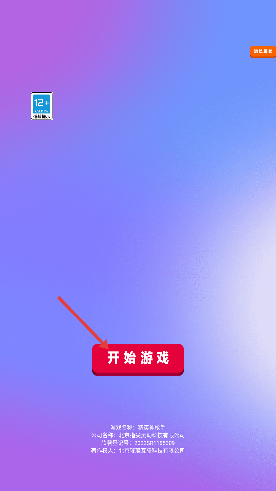 1、点击【开始游戏】,进入《精英神枪手》,注意【12+-CADPA】适龄提示,开启射击挑战。