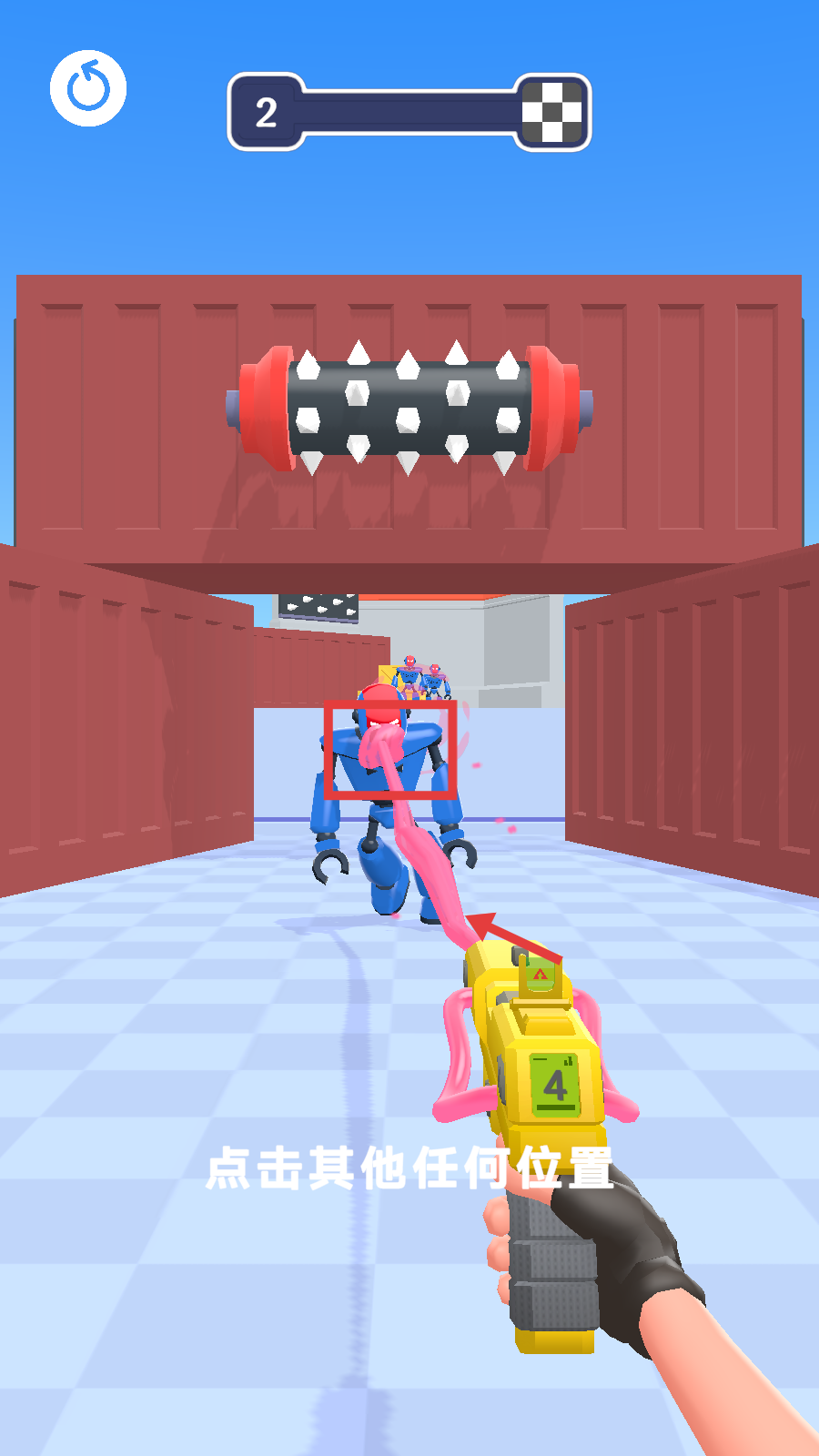 2、战斗中点击机器人,利用武器攻击,推进关卡进度。