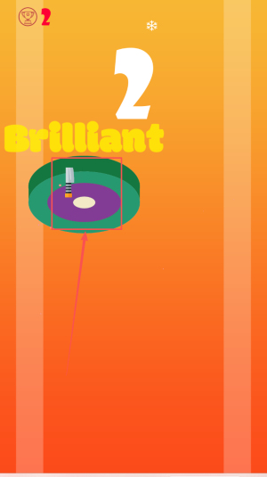 3、屏幕闪现“2 Brilliant”表示连击成功,继续点击发射飞刀保持连击。