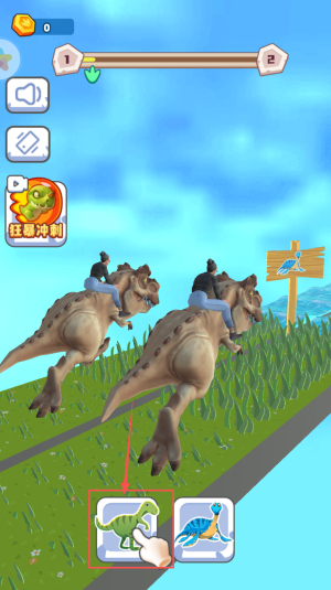 1、开启恐龙跑酷:进入游戏选择已解锁恐龙,明确 “躲避危险、收集道具、完成关卡” 目标,熟悉恐龙操控与跑酷基础逻辑,做好准备。