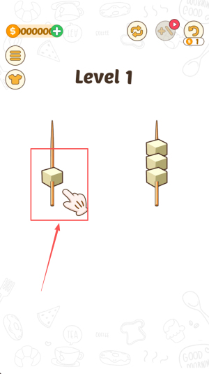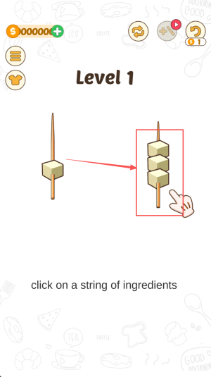 3、看到“Level 1 click on a string of ingredients”时,按提示连续点击食材串即可过关。