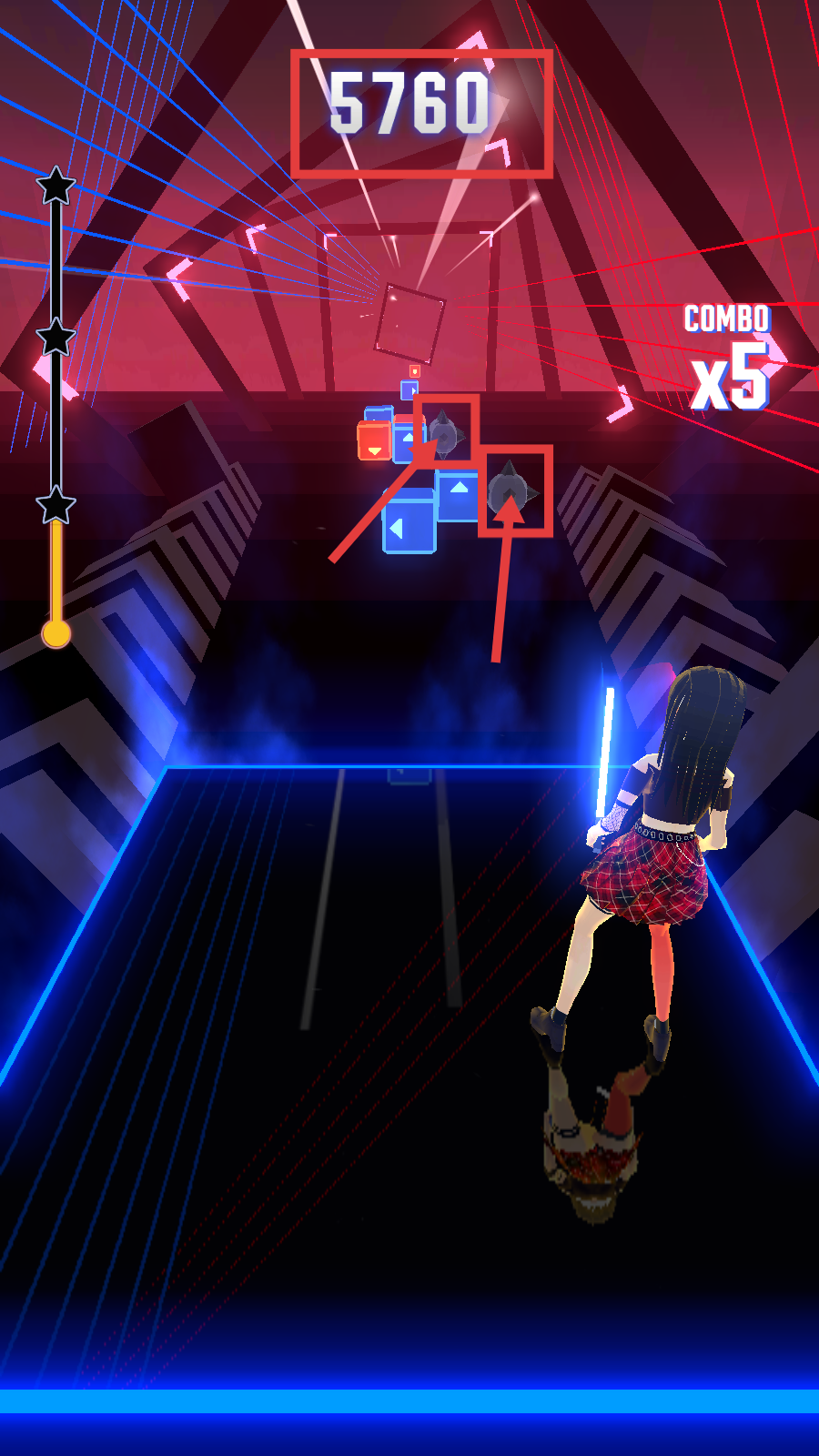 一款融合音乐节奏与光剑切割的跑酷类手游。