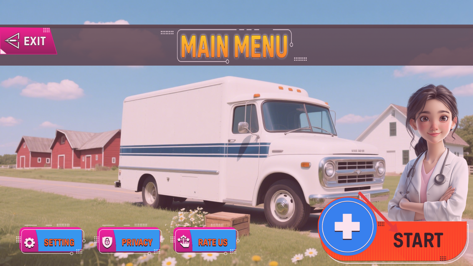 1、进入游戏主菜单,点击【START】,开启医疗救护车驾驶挑战,开启救援任务之旅。