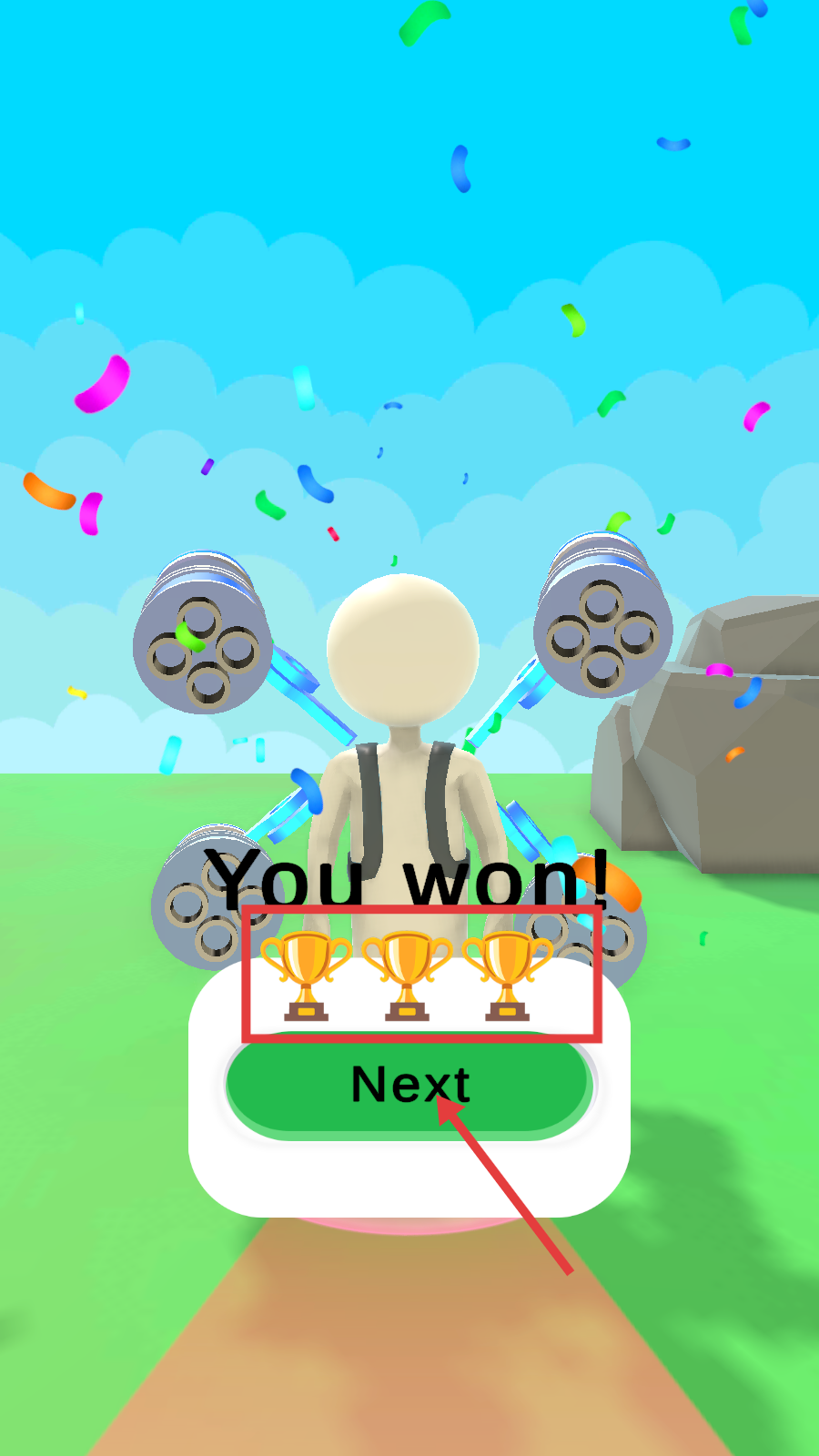 4、通关后点击【Next】按钮,获得三个奖杯奖励,继续挑战下一关。