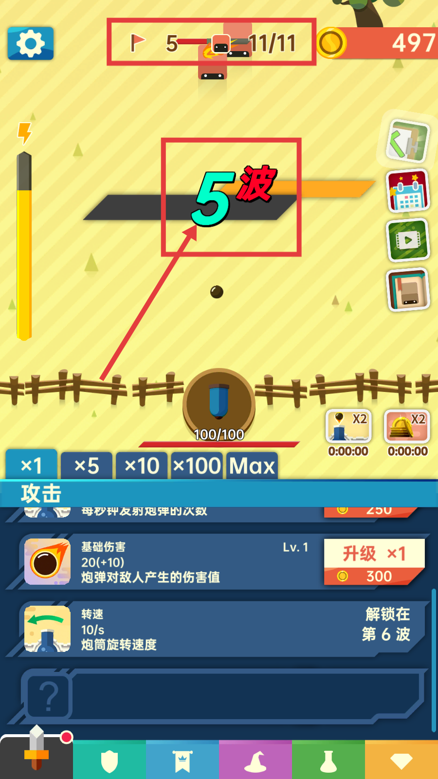 4、推进至【5波】,继续挑战更高波数的敌人,积累更多资源以升级和解锁新能力。