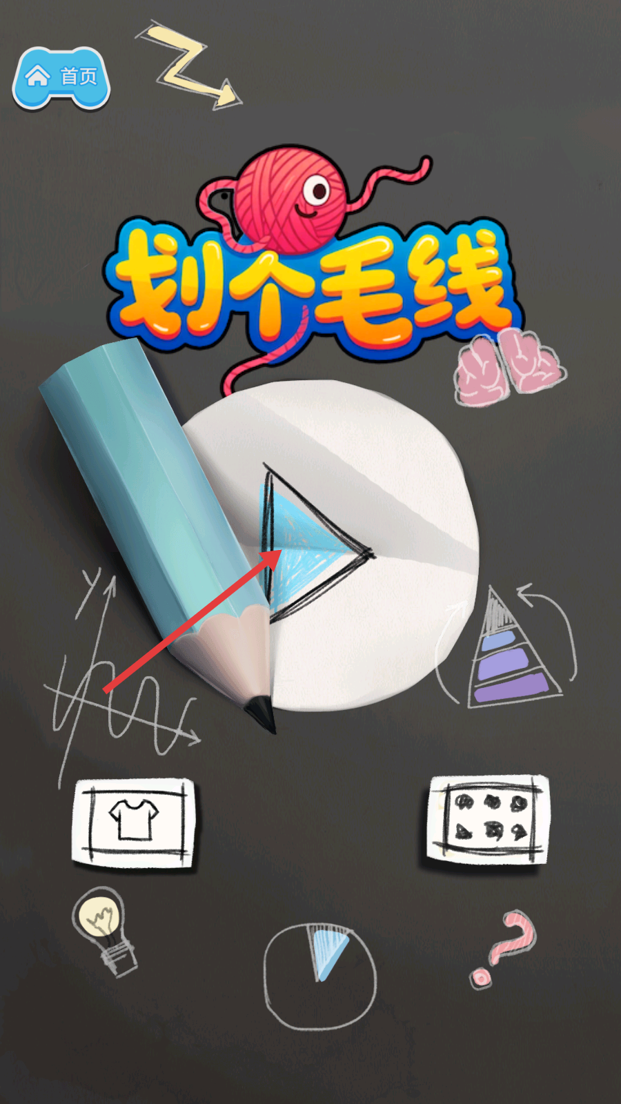 1、进入【划个毛线】游戏,点击播放按钮开始挑战,界面元素丰富,开启画线解谜之旅。