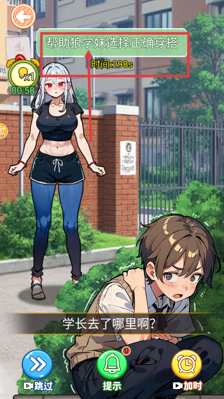 1、开启帮狼学妹选穿搭的任务,注意【时间:298s】的限制,快速规划穿搭选择,开启挑战。