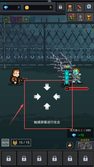 1、点屏幕灭敌人:点击屏幕瞄准敌人射击,快速清理周围威胁,避免被敌人包围,同时收集消灭敌人掉落的材料。