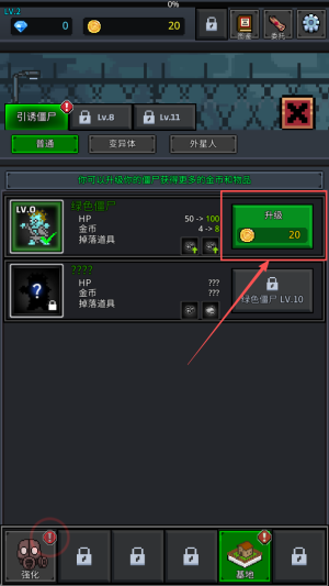 4、如何强化僵尸:在游戏界面中,点击“升级”按钮强化僵尸,提高其战斗力。