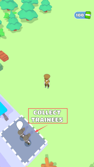 3、如何收集学员:将角色移动到学员所在位置,点击“COLLECT TRAINEES”按钮收集学员。