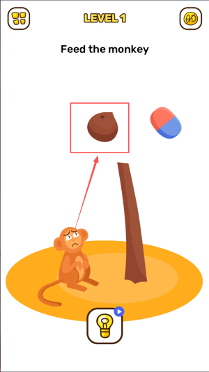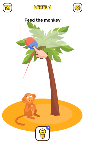 2、如何理解游戏目标:在关卡界面,你会看到“Feed the monkey”(喂猴子)的指示,这意味着你的目标是给猴子喂食。