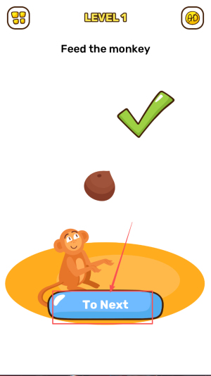 4、如何知道是否成功:当你成功地喂猴子后,屏幕上会出现一个绿色的勾号,并且猴子会表现出开心的样子,此时点击“To Next”按钮进入下一关。