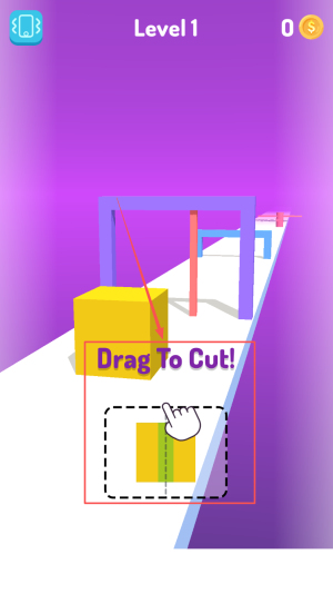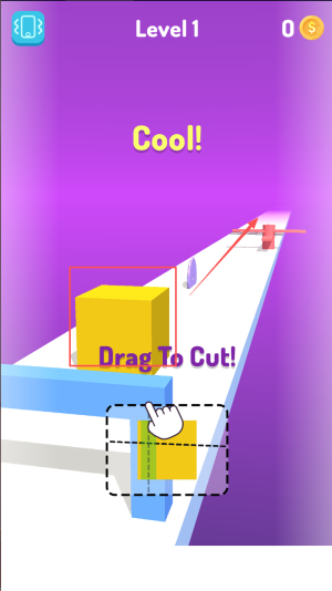 2、如何进行切割操作:在关卡界面,你会看到“Drag To Cut!”的提示,按照指示拖动刀片切割果冻。