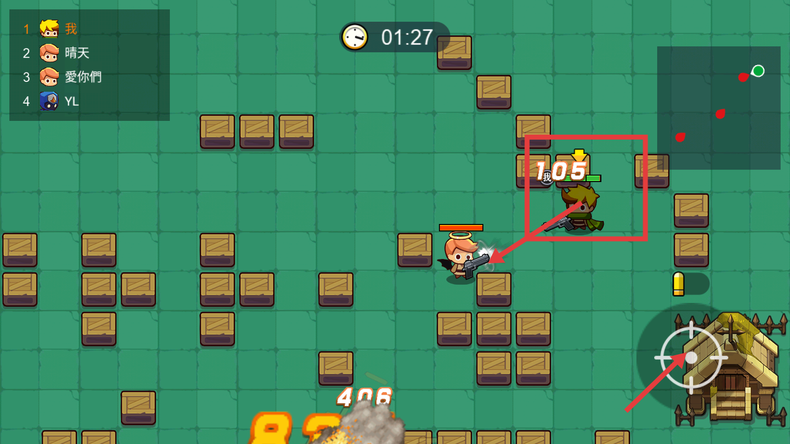 3、对局中使用枪支攻击敌人,注意走位躲避,精准瞄准提升伤害,争取更好排名。