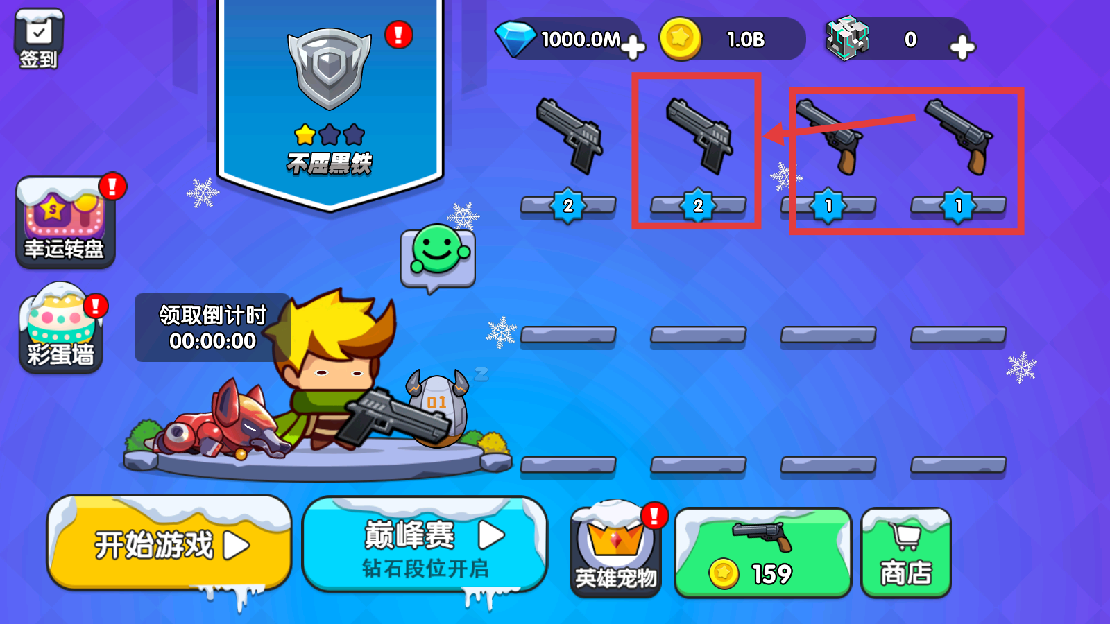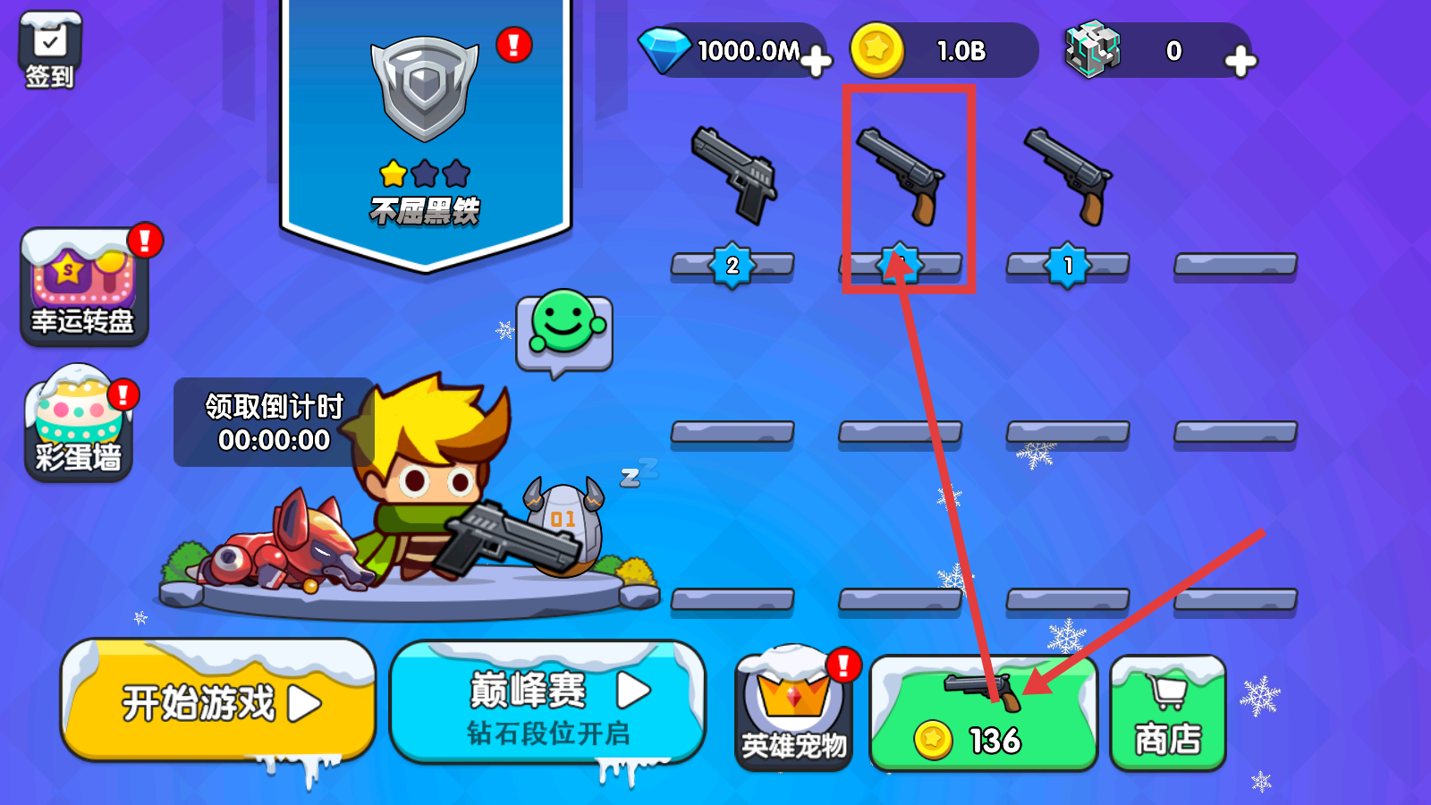 1、点击下方枪支升级区域,花费金币升级武器,提升战力,为战斗做好准备。