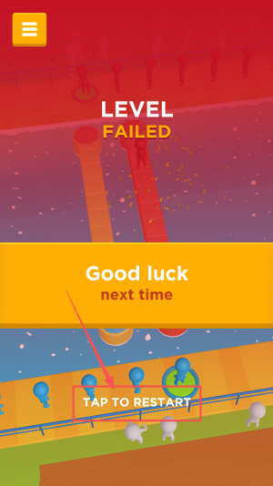 4、最后,如果失败,点击“TAP TO RESTART”按钮重新开始。