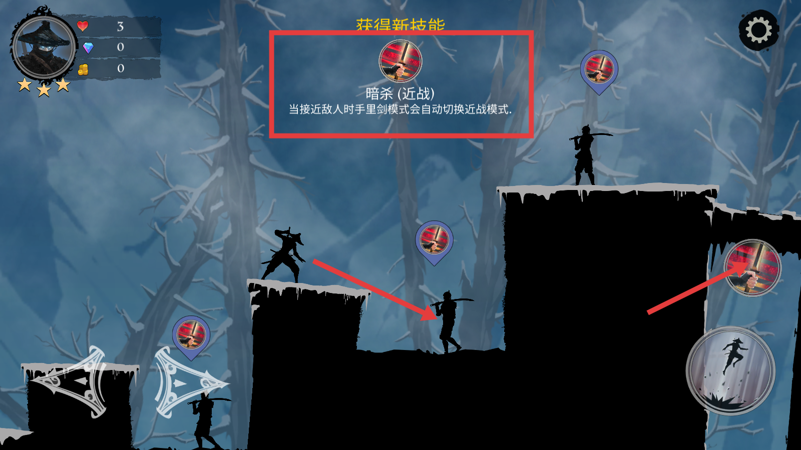 2、获得【暗杀-近战】技能,接近敌人时自动切换近战模式,善用该技能快速击败敌人,推进游戏进程。
