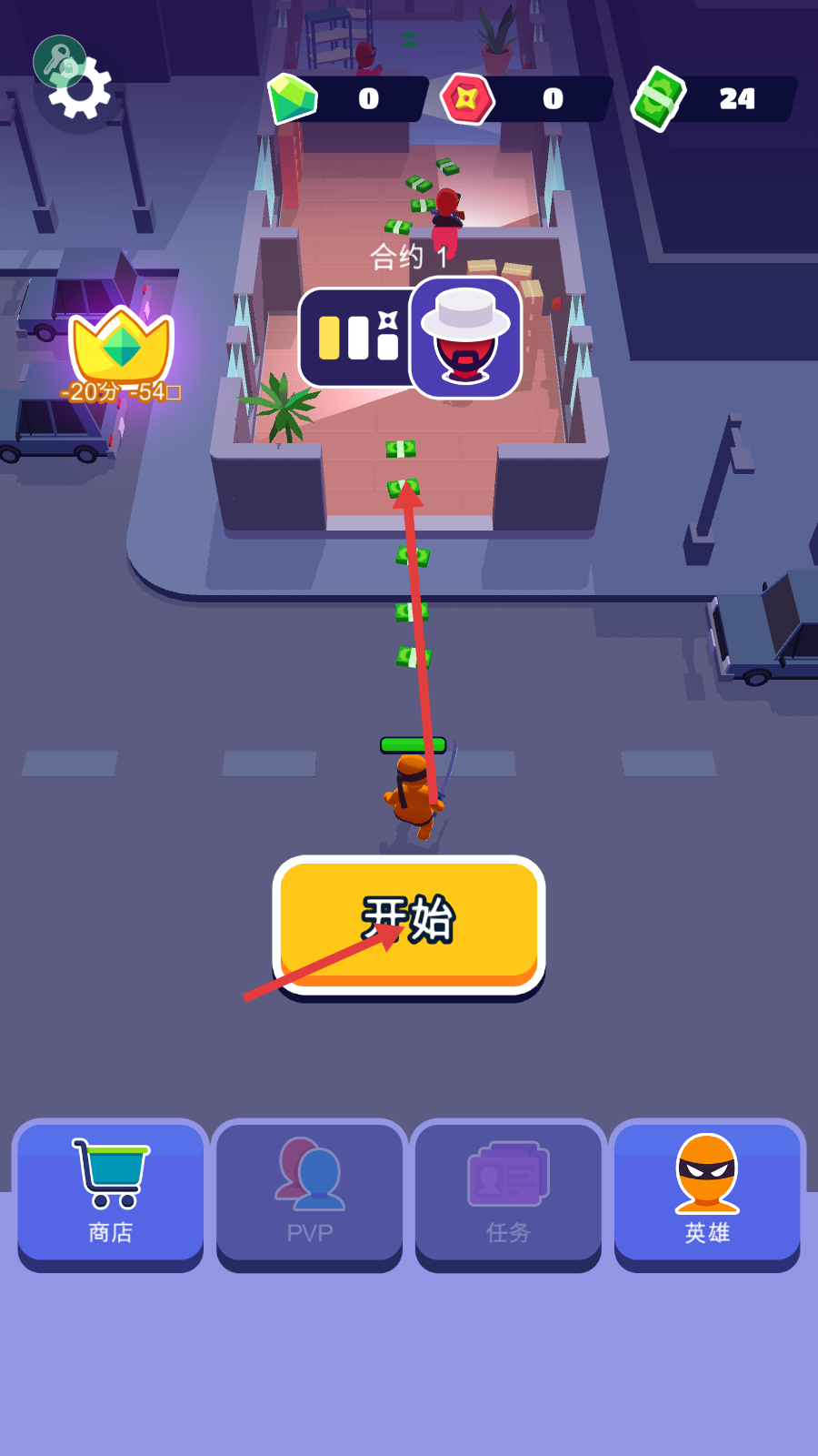 1、点击【开始】按钮,进入【合约-1】任务,开启新的关卡挑战,按步骤完成合约目标。