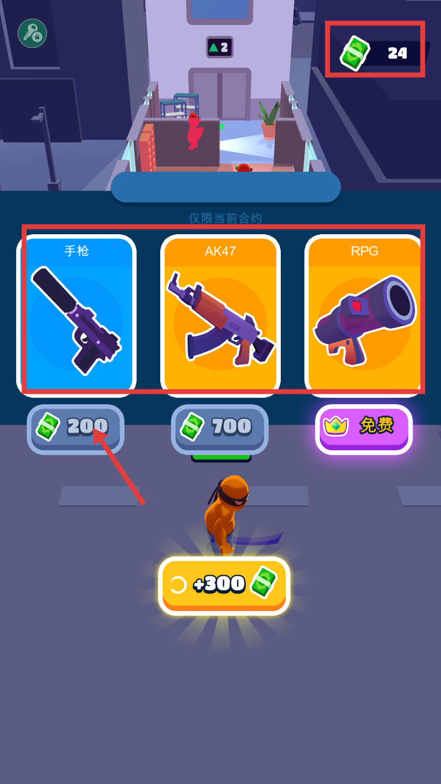 2、利用积累的金钱,可选择【手枪】【AK47】【RPG】等武器购买,增强战力以助力关卡推进。