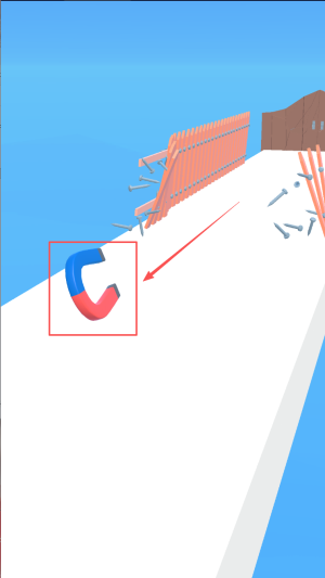 2、操控磁铁跑酷:在赛道上控制磁铁前进,遇到铁块时靠近并利用磁化功能收集,同时留意前方障碍物,及时点击屏幕磁化摧毁,避免阻挡。