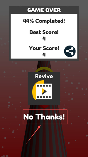 4、最后,若出现“GAME OVER”,可选择“Revive”看广告复活,或点“No Thanks!”。