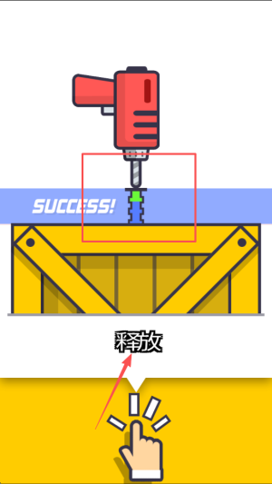 2、接着,在电钻移动到标有“SUCCESS!”的蓝色区域时释放手指,以完成挑战。