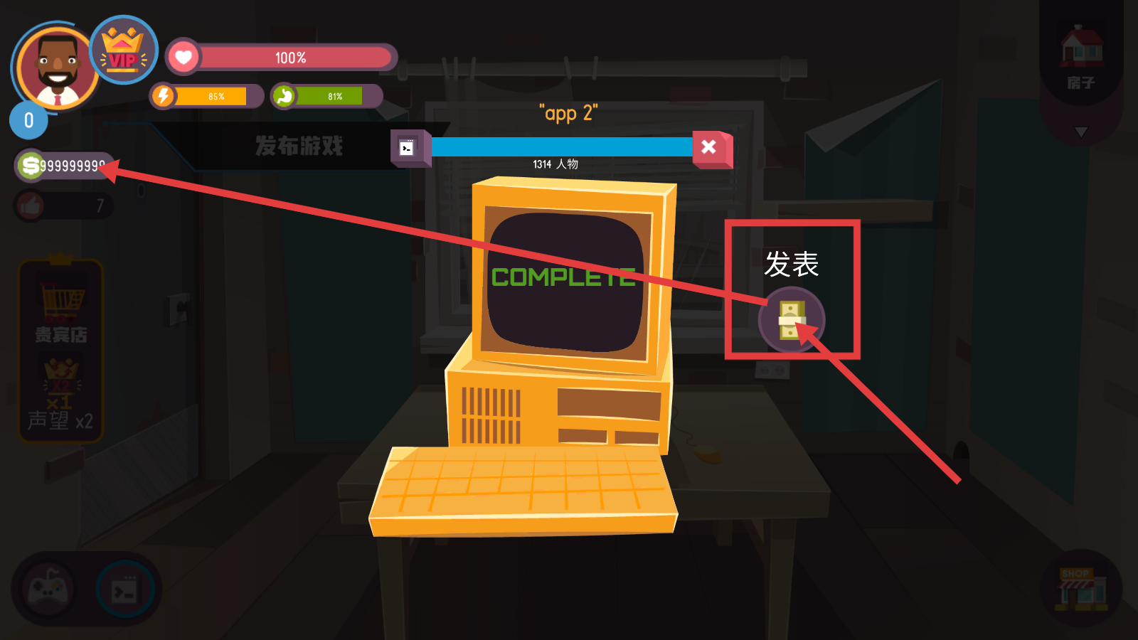 4、点击【发表】按钮,发布开发完成的应用,获取金币收益,积累资源用于后续项目开发。