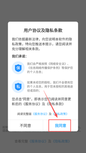 1、首先,阅读并同意《用户协议及隐私条款》,点击“我同意”按钮进入游戏。