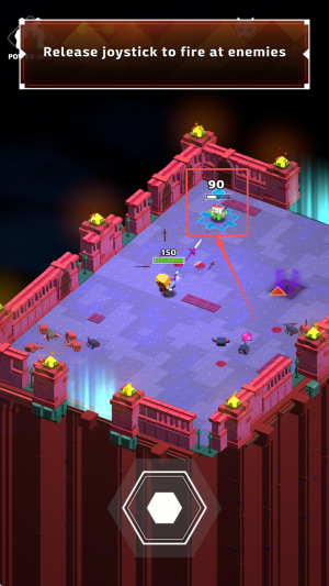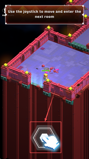2、如何移动角色:使用虚拟摇杆控制角色移动,进入下一个房间。